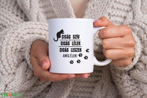 Cicás szív, cicás lélek, cicás leszek amíg élek bögre