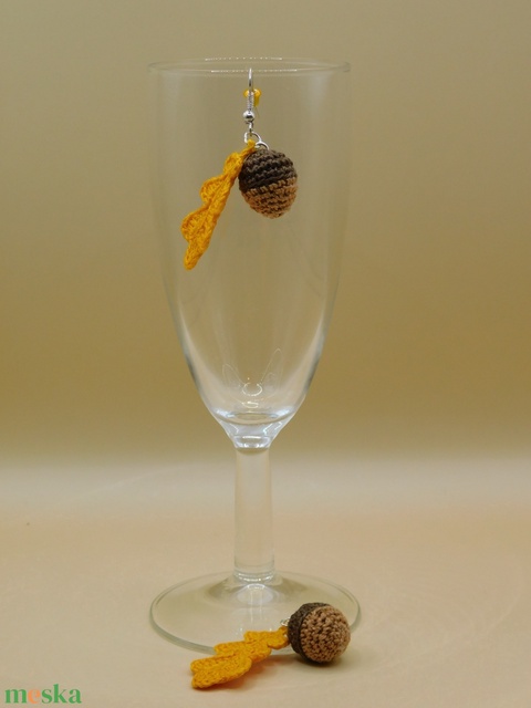 horgolt makk levéllel fülbevaló