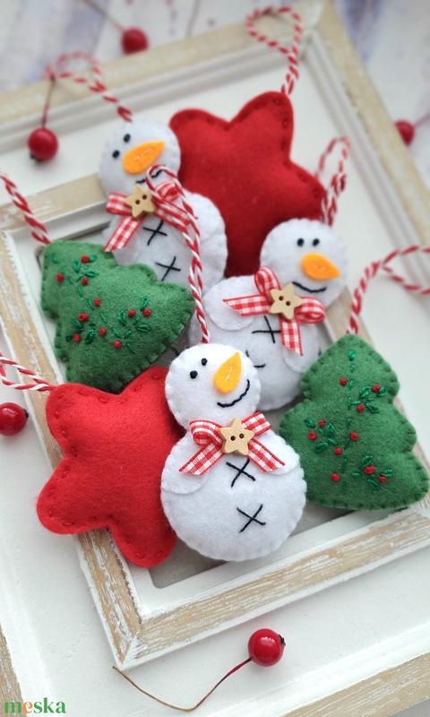Bababarát karácsonyi filc díszek, Hóember, csillag, fenyőfa