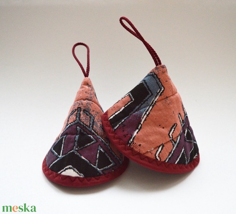 Edényfogó, fedőfogó, fülfogó - fekete - mályva - barna színű alapon, geometrikus mintával, bordó szegéllyel (2 db)