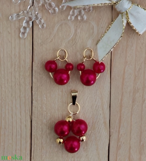 Burgundi gyöngy ékszerszett