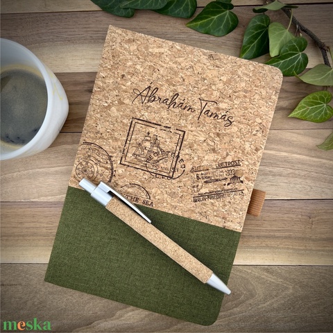 ÚJDONSÁG!-Gravírozott parafa notesz, jegyzetfüzet ajándék parafa tollal