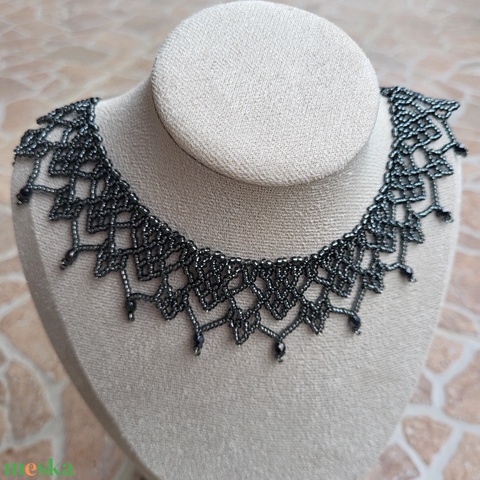 Ezüstközepű szürke 'csipke' gyöngygallér