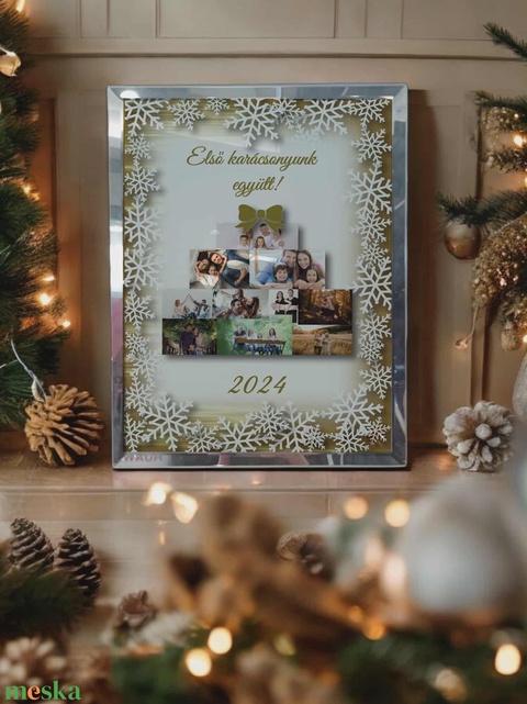 Karácsonyi tükrös szélű fotóüveg