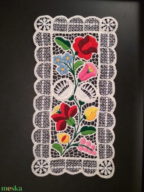 - Anyaga: pamut vászon, pamut hímzőfonal, pamut gépihímző cérna