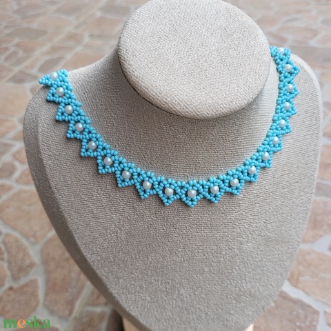 Kék és fehér ukrán gyöngygallér teklagyönggyel