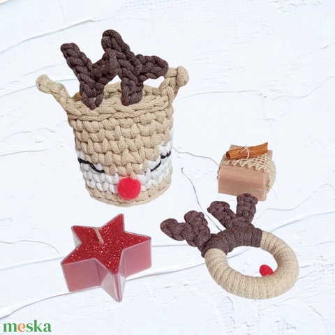 Rénszarvas karácsonyi ajándékszett, drapp/piros