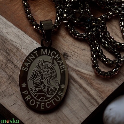 Fekete Mihály arkangyal nemesacél medál fekete nemesacél láncon 5641380