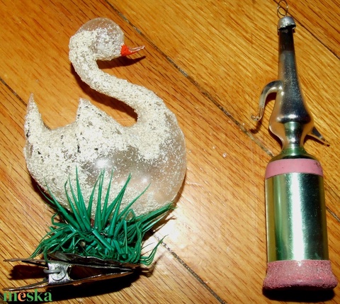 2 db retro karácsonyfa dísz, korának megfelelő állapotban.