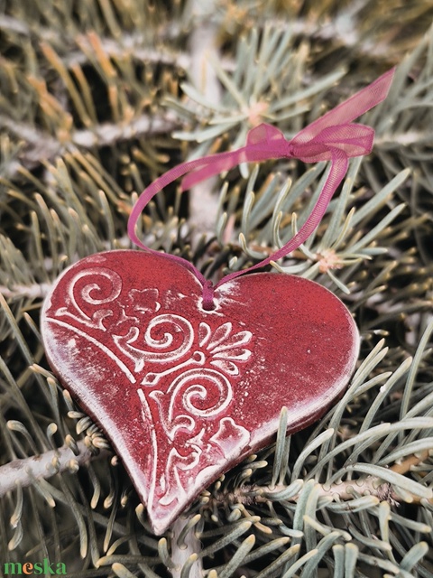Szív alakú kerámia karácsonyfadísz