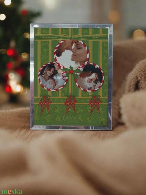 Karácsonyi tükrös szélű fotóüveg