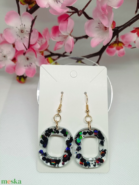 Galaxis Fénye – fekete flitteres gyantás fülbevaló