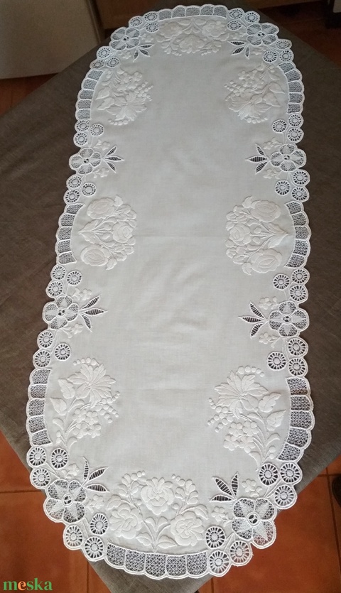 Kalocsai asztali futó angolmadeira szegéllyel