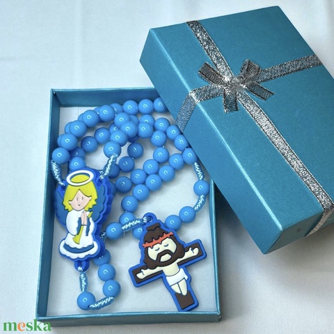 Kék gyerek kisfiú rózsafüzér keresztelő ajándék díszdobozban 5641754
