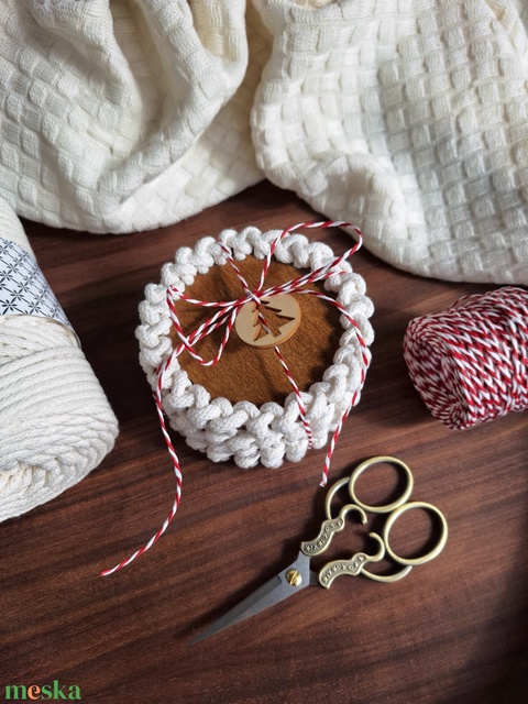 Ajándékcsomag - poháralátét horgolt, fa alap