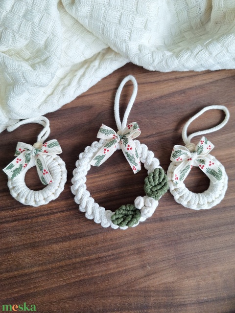 Makramé Karácsonyfadísz Szett (3 db) - fehér-zöld