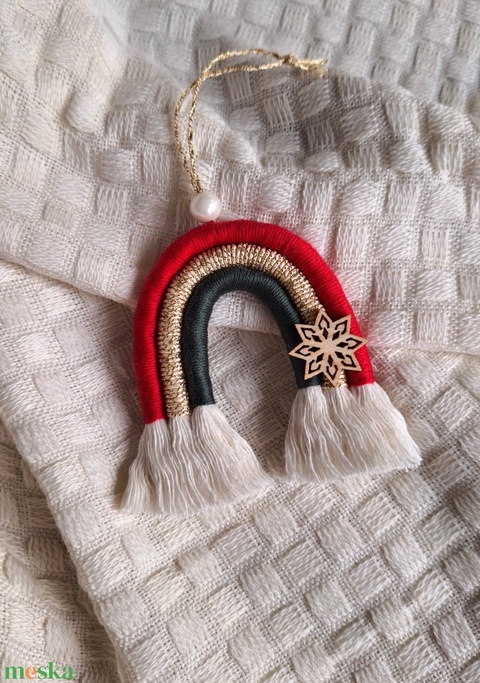 Makramé Karácsonyfadísz - szivárvány #2