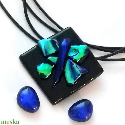 - Anyaga: dichroic ékszerüveg, ékszer szerelék, bőrszál, viaszolt szál, sodrony