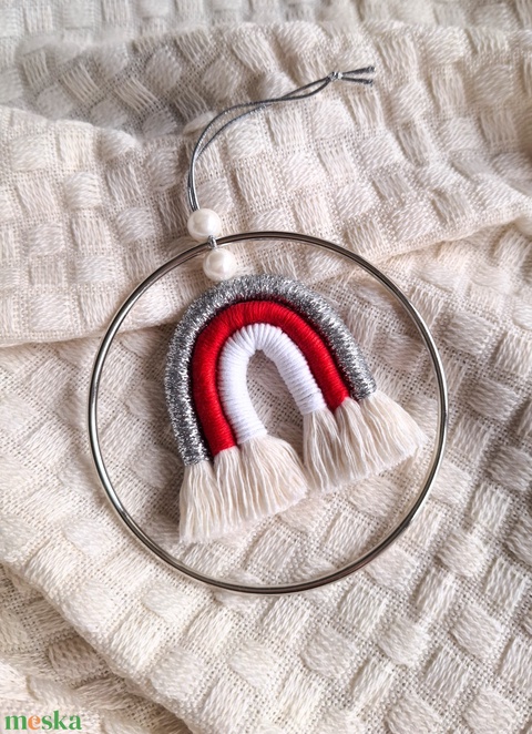 Makramé Karácsonyfadísz - szivárvány (ezüst)