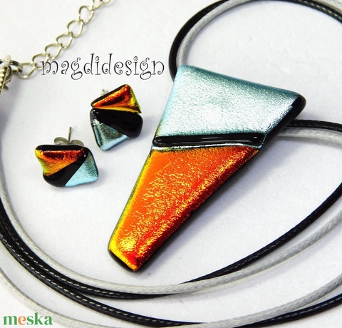 Ezüst-narancs csillogás üvegékszer szett nyaklánc stiftes fülbevaló