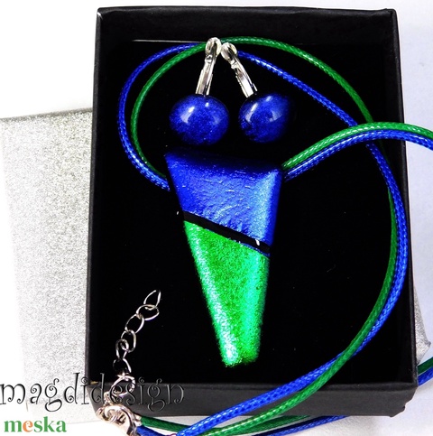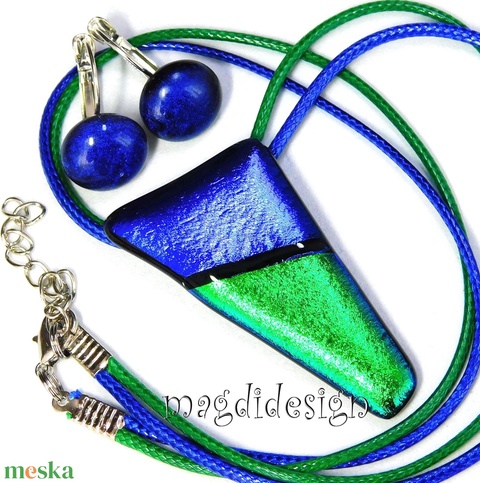 Kék zöld csillogás üvegékszer szett nyaklánc kapcsos fülbevaló