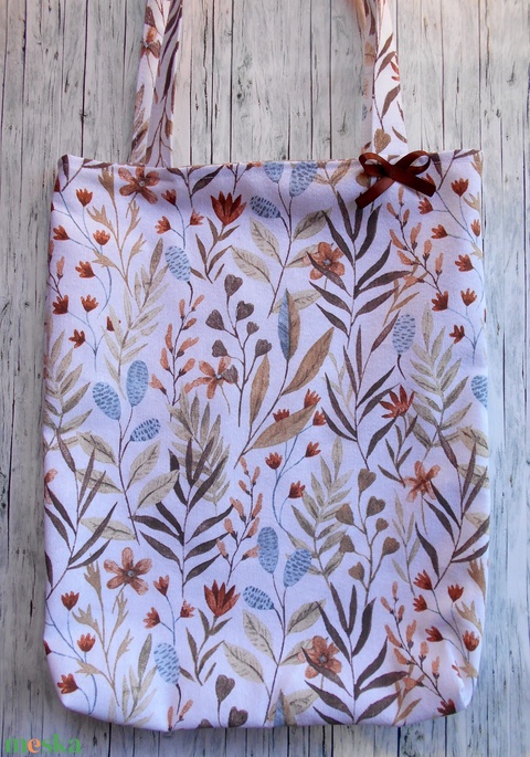 Fehér alapon őszies levél és virág mintás bevásárló táska/szatyor