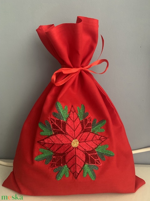 Mikulás zsák, karácsonyi ajándék zsák hímzett mintával