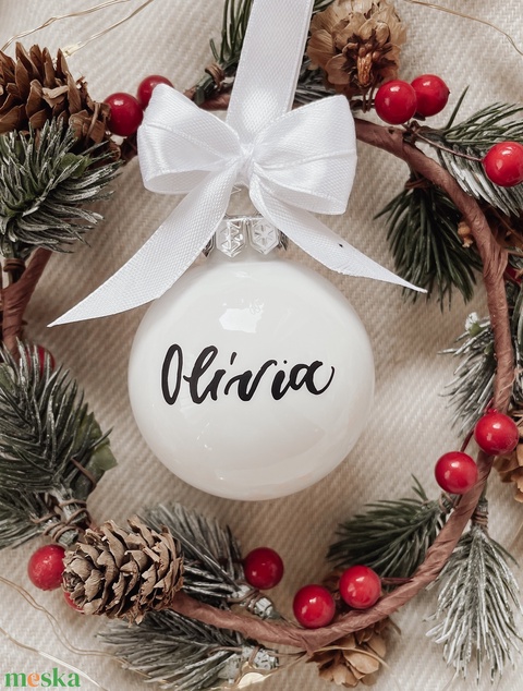 Egyedi feliratú karácsonyi üveggömb - fehér fényes