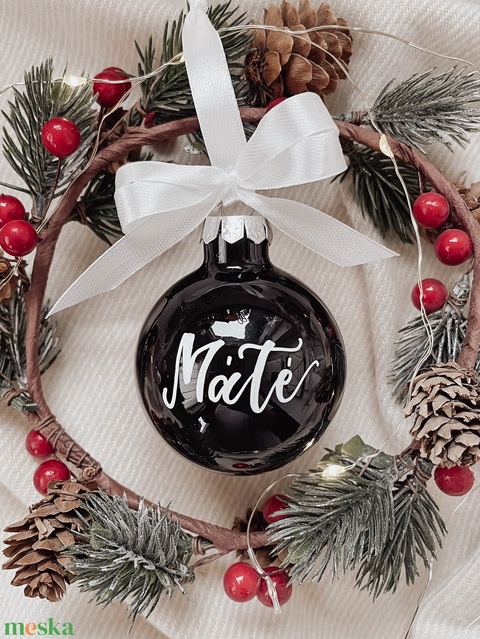 Egyedi feliratú karácsonyi üveggömb - fekete fényes