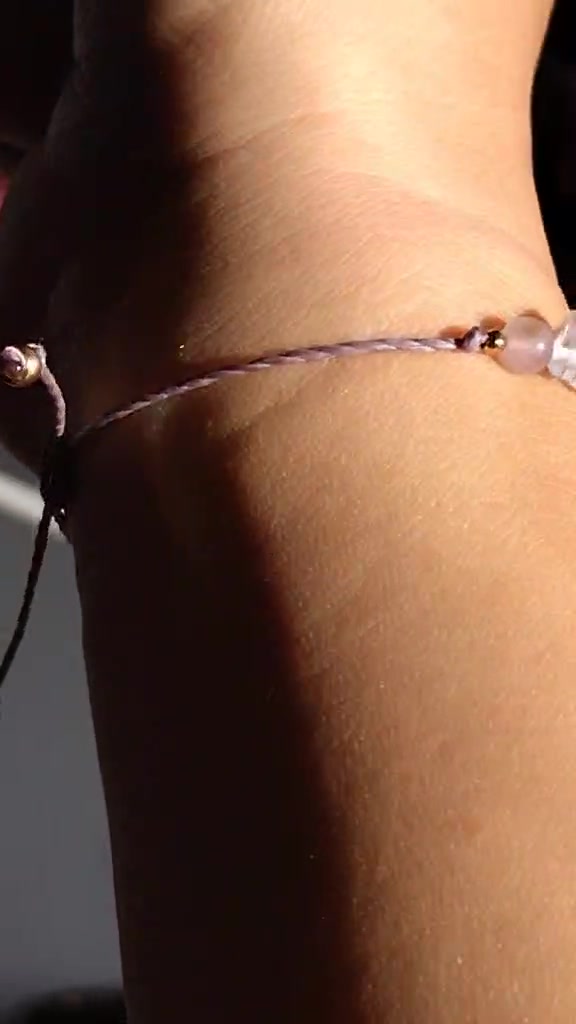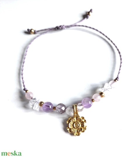 Ametiszt - hegyikristály - rózsakvarc minimál makramé karkötő