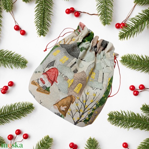 Karácsonyi mintás összehúzható zsákocska - Manós