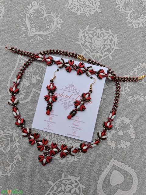 Az ékszerek üveggyöngyből és cérnából készülnek, melyek tartósak, ha kíméletesen bánsz velük (kerüld a nedvességet, vegyszereket, ütődést, alvást bennük).