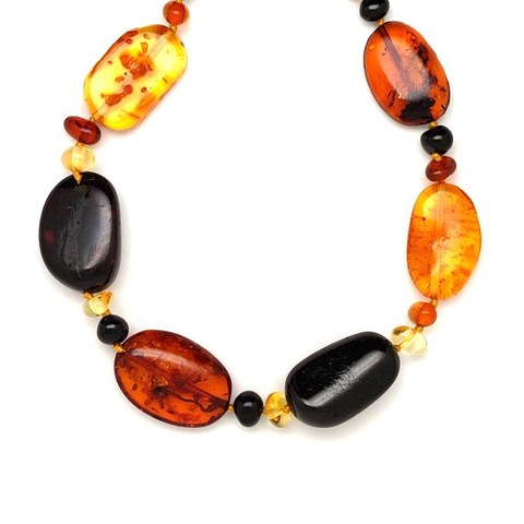 Borostyán pebble köztes 7-17x12-22mm nyaklánc 50cm