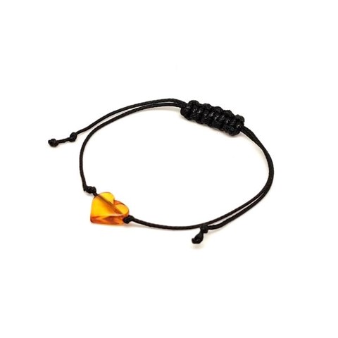 Borostyán állítható cérna szív karkötő 9x11mm