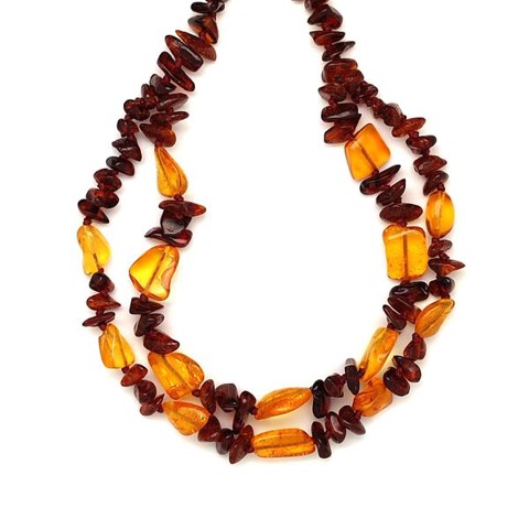 Borostyán dupla soros barna splitter nyaklánc 50cm
