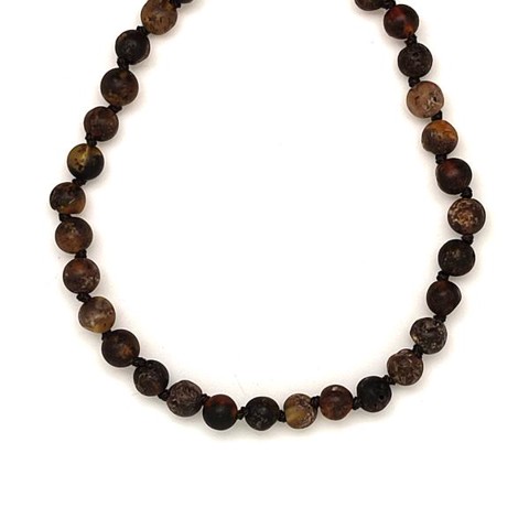 Borostyán sötét barna matt golyó 5mm nyaklánc 50cm