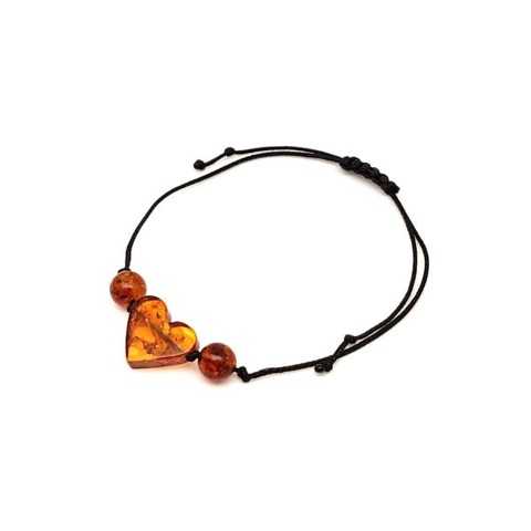 Borostyán állítható cérna szív golyó karkötő