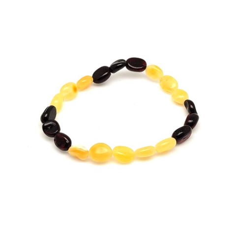 Borostyán sötét barna sárga pebble karkötő 7-9x5-7mm