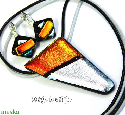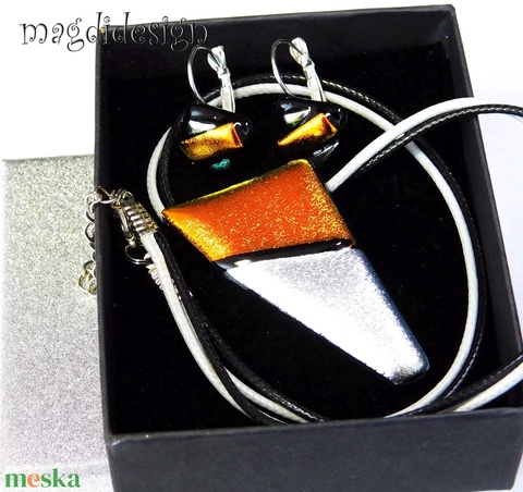 Ezüst narancs csillogás üvegékszer szett nyaklánc, kapcsos fülbevaló