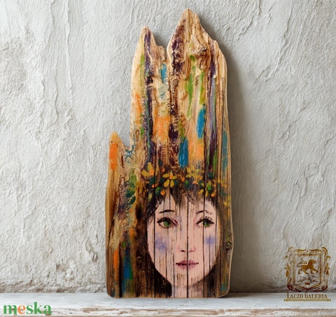 Zöldszemű - Rusztikus Fatábla, Ajándék ötlet - Egyedi Falidísz - Tündér, Mese, portré