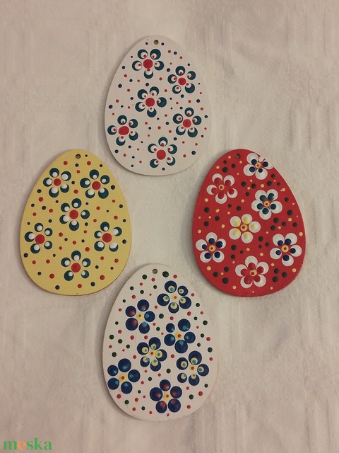 Húsvéti dísz pontozott technikával, virág mintával - 4 darabos készlet