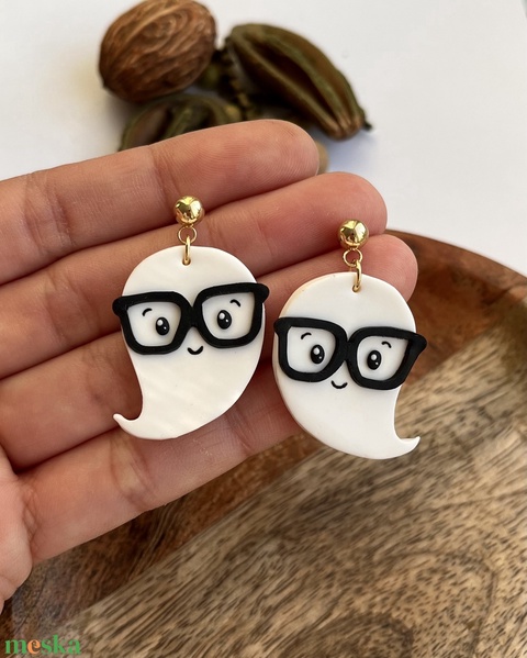 Szemüveges szellem süthető gyurma fülbevaló