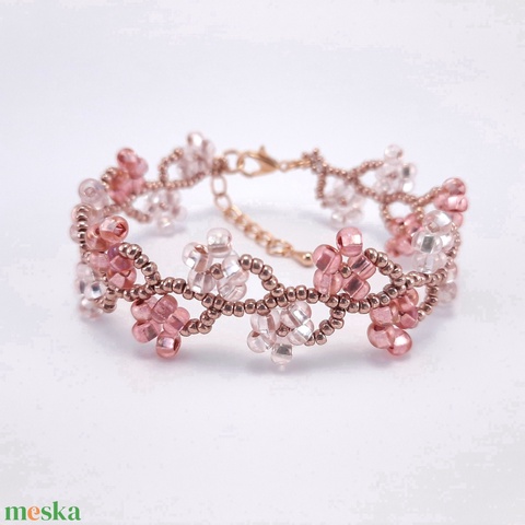 Gyöngyös virágos, színjátszó garnéla és rózsaszín karkötő