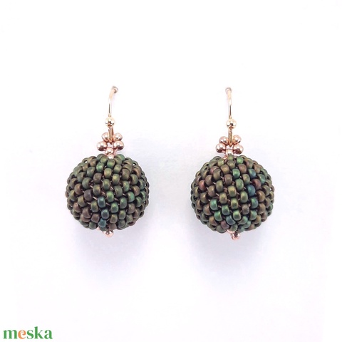 Gyöngyös bogyós, patinás zöld fülbevaló