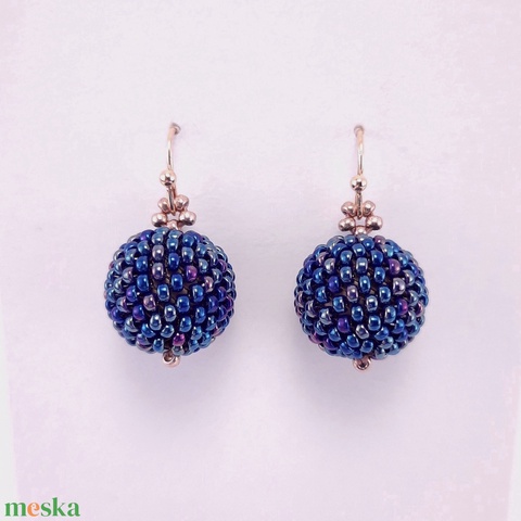 Gyöngyös bogyós, színjátszó kék színű fülbevaló