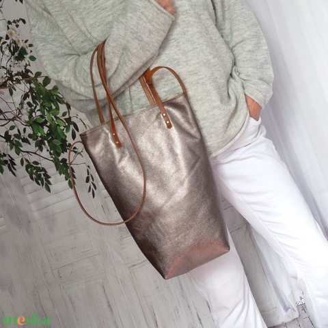 - Anyaga: halvány "rose gold" színű borjúbőr, olasz bivalybőr