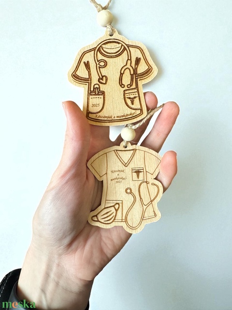 Egészségügyi dolgozóknak szóló fa karácsonyfadísz – gravírozott, névre szóló ajándék