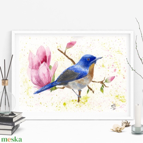 Kék madár - akvarell illusztráció, nyomat, A4-es méretben - az "ÁLLATI!" - sorozat része