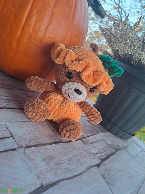 - Anyaga: zsenília fonal, poliészter tömőanyag, pamut fonal, biztonsági szemek