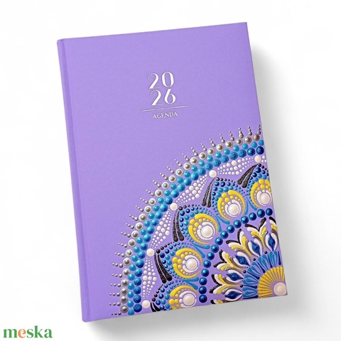 Pontozott mandalás határidőnapló 2026-os, – lila, kék-ezüst